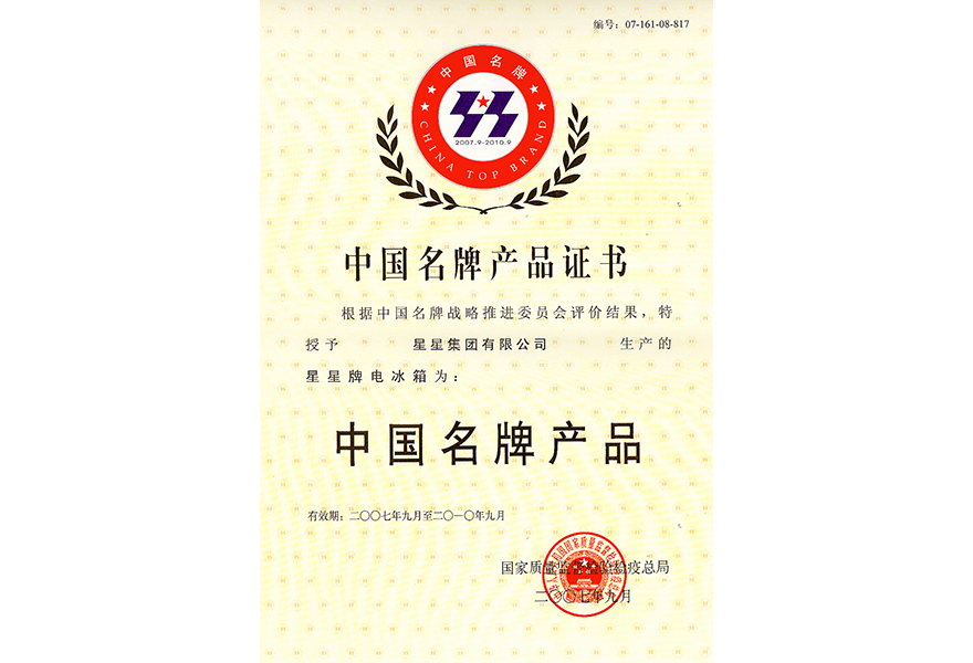 2007.9 中國(guó)名牌(電冰箱)證書(shū)