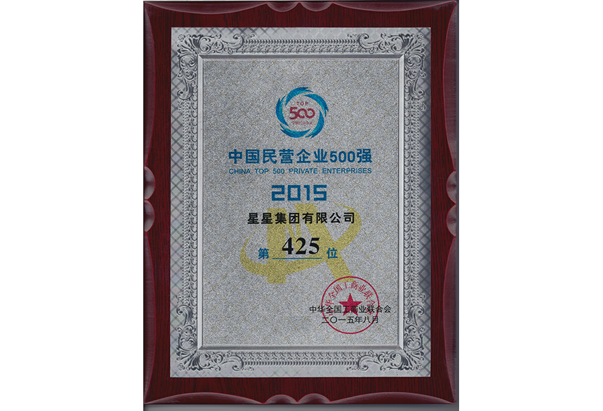 2015.08 中國(guó)民營(yíng)企業(yè)500強(qiáng)(第425位)