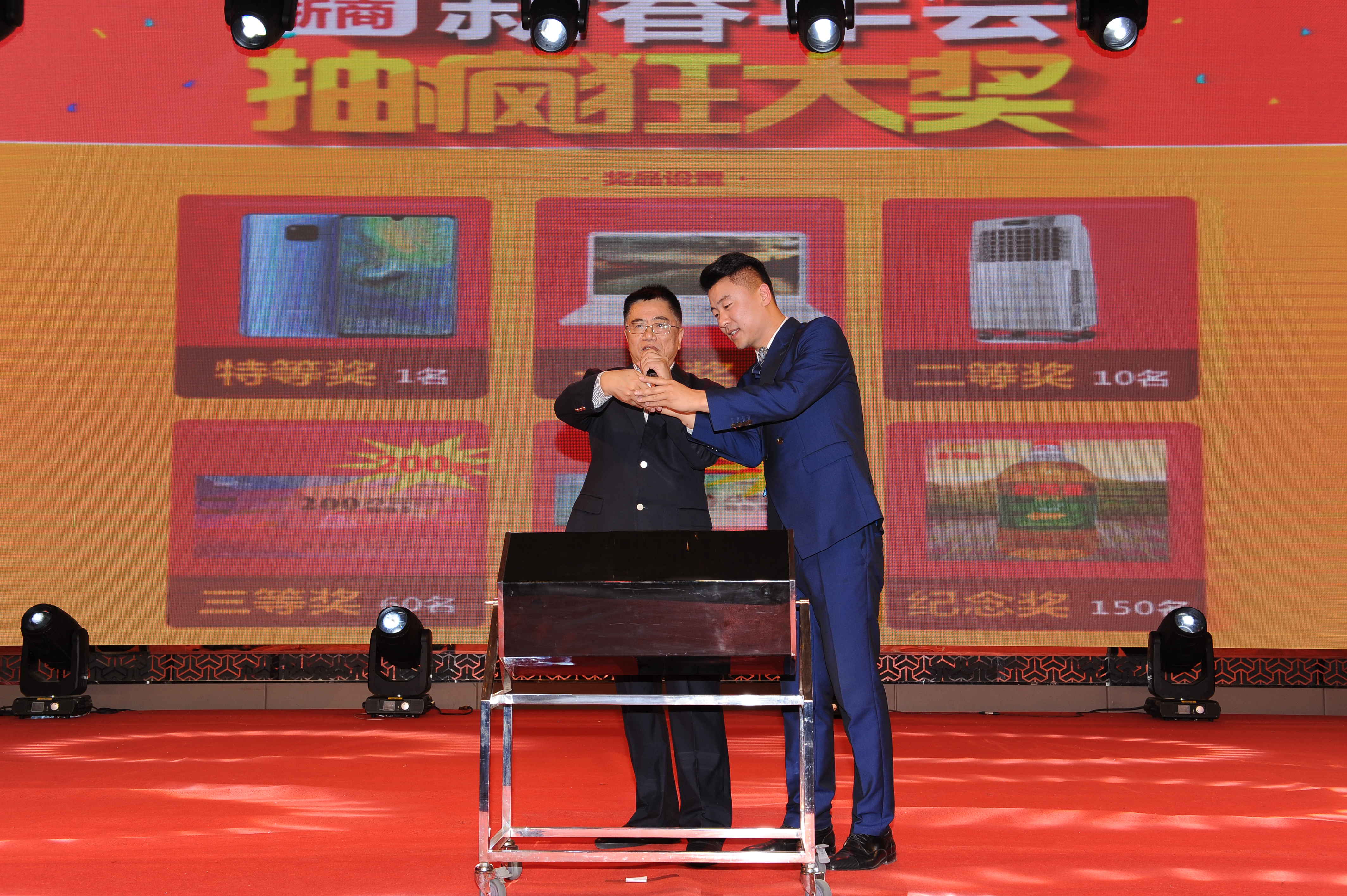 本次年會由三部分組成,第一部分是新春年會演出,第二部分是年會晚宴,第三部分是年會的抽獎環節。