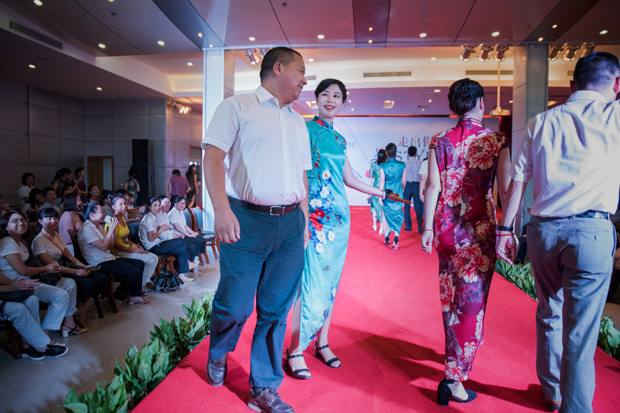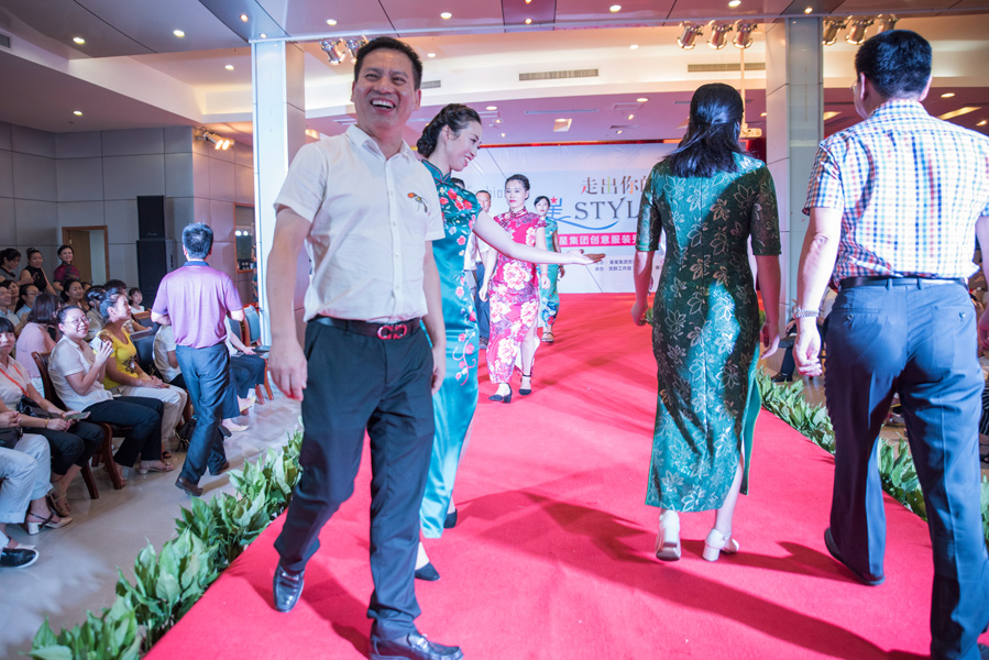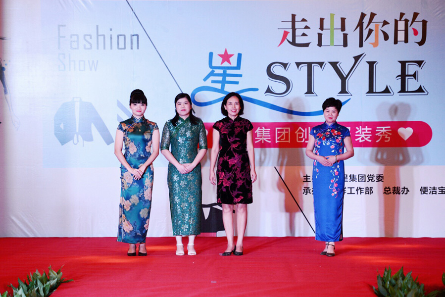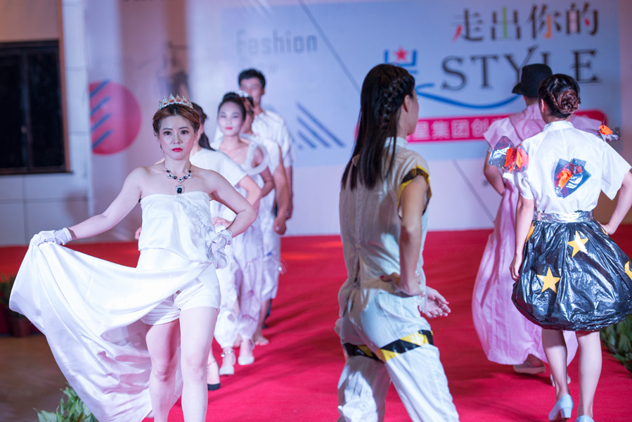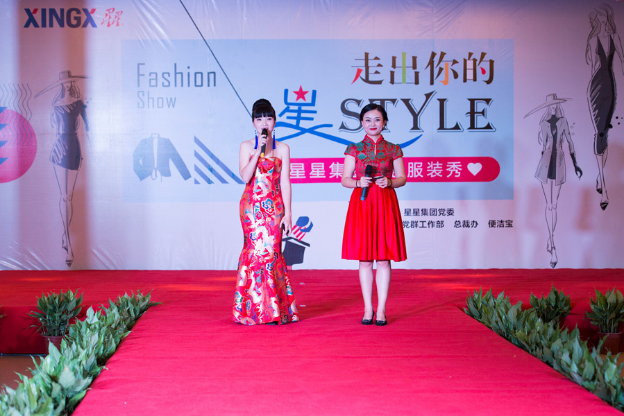 全場秀共有三大篇章:篇章一是為了集中展示集團各子公司文化及產(chǎn)品特色,所有模特將公司的LOGO及特有元素揉入他們自創(chuàng)的服裝,以展示員工對公司的認同及其創(chuàng)新精神;篇章二為大家展現(xiàn)的是星星員工的環(huán)保創(chuàng)作風采,所有的服裝都是采用環(huán)保材料,經(jīng)過所有員工頭腦風暴設計后自制而成,充分展現(xiàn)星星員工的智慧;篇章三是一場視覺饕餮,一場美侖美奐的旗袍秀把這場秀帶上高潮,驚艷了在場所有人的雙眼!