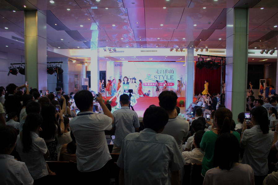 9月7日晚,星星集團的大會議室里,盛裝上演了一場由星星人自創(chuàng)自編自導的星星第16屆文化藝術(shù)節(jié)的小高潮項目——走出你的星STYLE,星星集團職工創(chuàng)意服裝秀。來自星星旗下各子公司、不同崗位的“女神們”在舞臺上傳遞著她們的自信、嫵媚及神采飛揚。椒江區(qū)委宣傳部副部長姜涇,集團常務副總裁蔣亦標,集團黨委書記、副總裁陳華明,集團副總裁林海平,星星冷鏈公司董事長楊文勇,星星科技公司董事長王先玉,星星便潔寶公司總經(jīng)理黃朝陽,集團財務管理中心主任泮玲娟,水晶光電公司人力資源中心副總監(jiān)李群等領(lǐng)導出席并觀看了秀。其中,集團黨委書記陳華明為本場秀作了致辭。